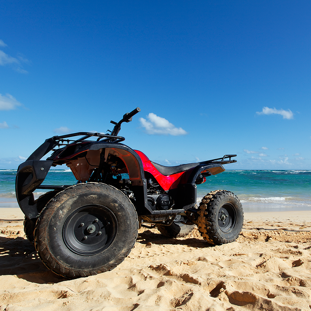 Conduce una cuatrimoto moderna por playas de arena clara y paisajes desérticos únicos.